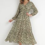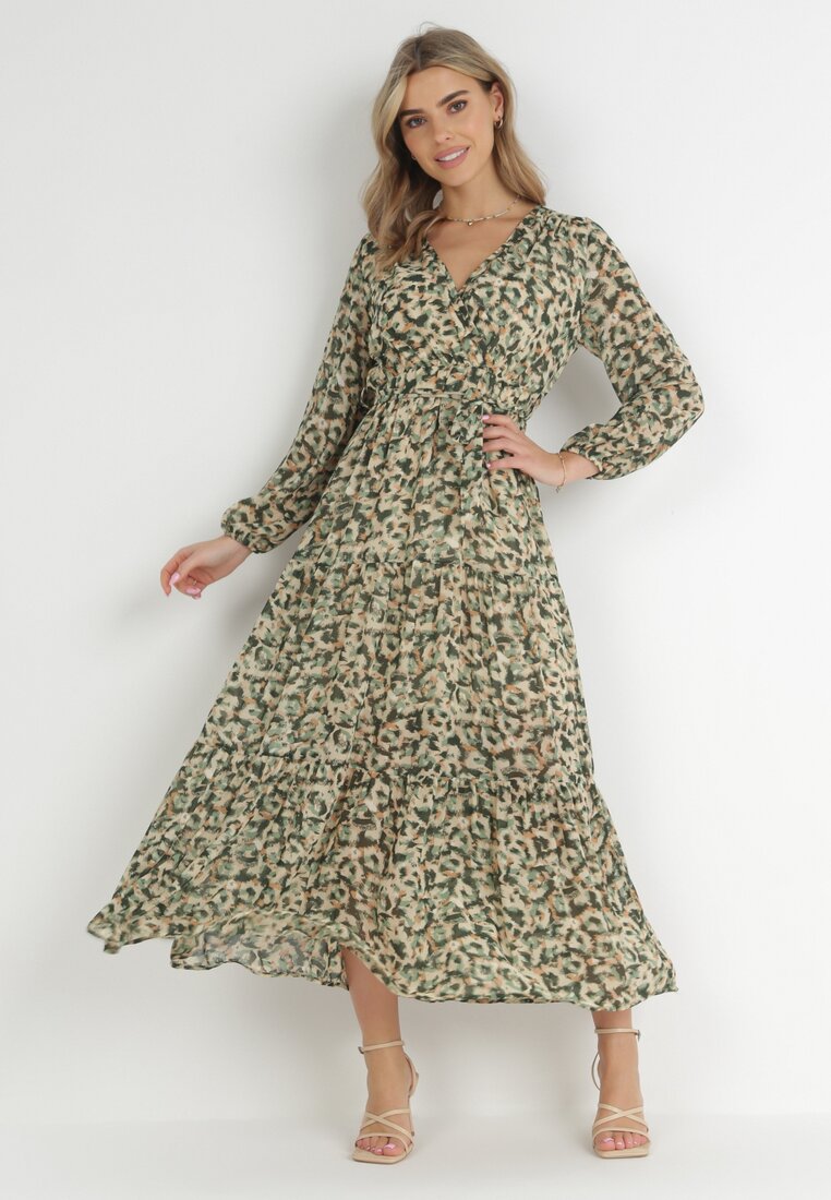 Zielona Sukienka z Kopertowym Dekoltem w Cętki Conneie