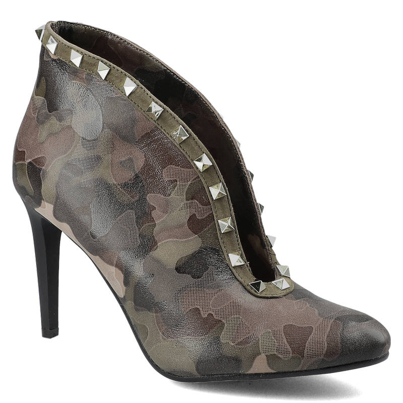 Zielone Botki Carinii Damskie Buty Na Obcasie