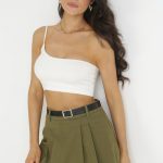 Zielone Szorty Jeansowe Imitujące Spódnicę Mini z Paskiem Arenie