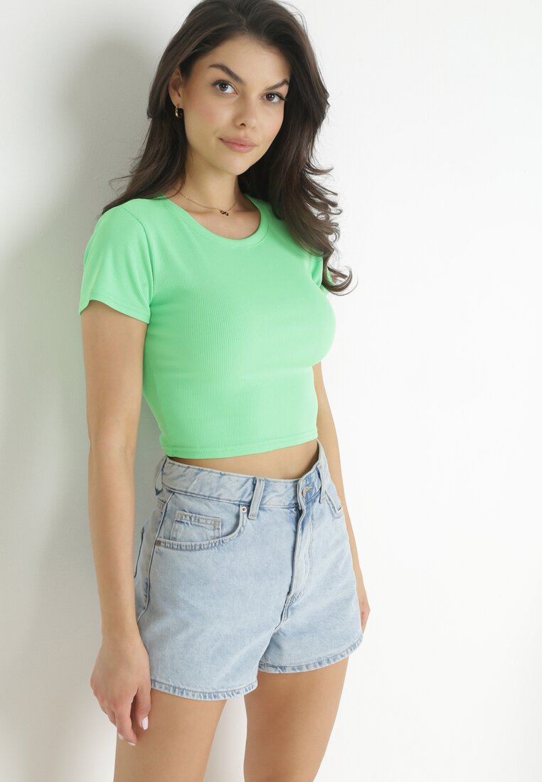 Zielony Dopasowany T-shirt o Skróconym Fasonie Narela