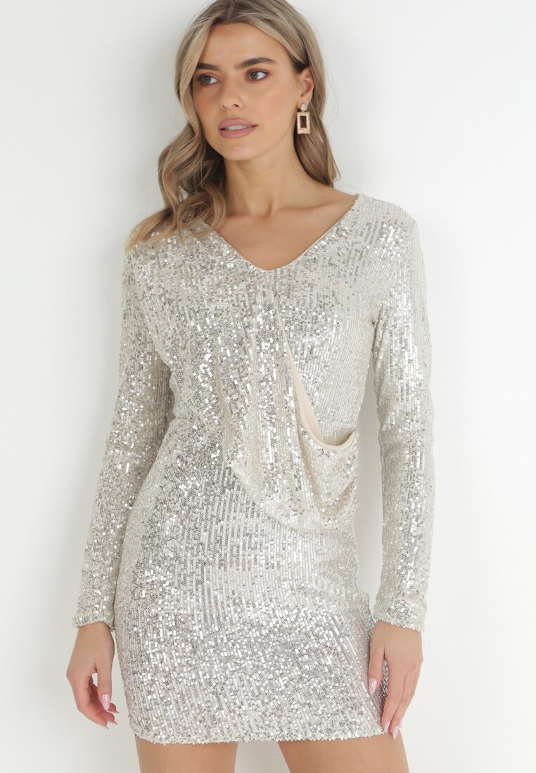 Złota Cekinowa Sukienka Mini z Gumką w Pasie Colke