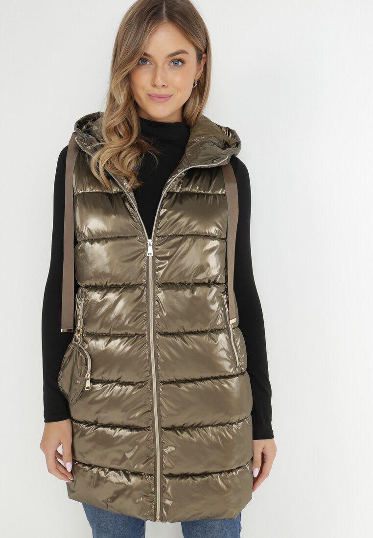 Złota Kamizelka Metaliczna z Pikowaniem i Saszetką Rosica